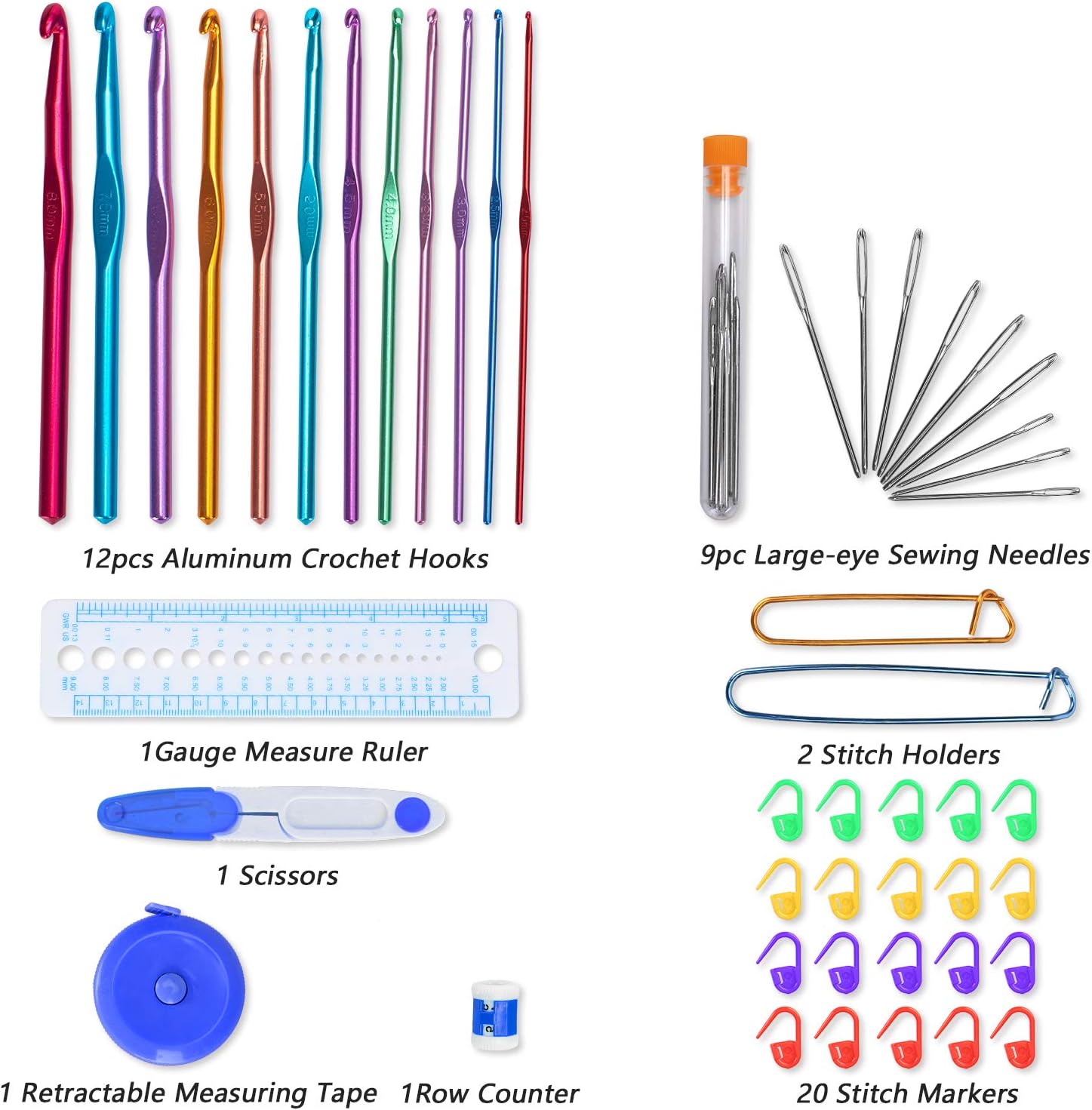 Amazon Com Teamoy Aluminum Crochet Hooks Set Knitting Needle Kit Organizer Carrying Case With 12pcs 2mm To 8mm Hooks And Complete Accessories All In One Place And Easy To Carry Owls